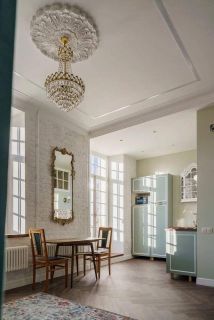 На первом этаже расположилась просторная гостиная зона с камином, которая плавно переходит в кухню-столовую, также на первом этаже находится кабинет, гостевой санузел, зона прихожей, постирочная и котельная.