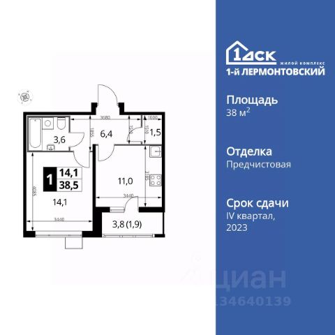 Прямая продажа от застройщика! Жилой Комплекс класса Комфорт Плюс. Продаётся 1-к квартира номер 502 общей площадью 41.9 кв.м. на 10-м этаже 22 этажного здания. Отделка Whitebox. Цена с учётом скидки. Особенности квартиры: - Просторная спальня, в которой можно разместить большую кровать. - Линейная планировка - максимальная функциональность и удобство. - Раздельный санузел - больше удобства для всех членов семьи. - Линейная кухня - функциональность и практичность в одном решении. - Ниша под шкаф - компактное и удобное место для вещей. - Лоджия - уютное место для отдыха и тишины. Квартира с предчистовой отделкой (White box). Вам не придется заниматься черновыми и трудоёмкими работы, а чистовую отделку и дизайн - сделайте на свой вкус. Информация о комплексе: Ощущение уютного дома должно начинаться с подъезда. Мы постарались предусмотреть все нюансы, чтобы наши лифты отвечали самым строгим современным требованиям. Двор без машин, закрытое, безопасное, охраняемое место с удобным доступом для вашего авто, более чистый воздух и гарантированное место для стоянки - и это далеко не преимущества наличия подземного паркинга. А наличие кладовых позволит вам поддерживать идеальный порядок и уют в вашей квартире! "1-й Лермонтовский" расположился недалеко от уже сложившегося зеленого окружения - Люберецкого парка и Жулебинского лесопарка, переходящего в природно - исторический парк "Кузьминки". Если вы предпочитаете активный семейный отдых на свежем воздухе - в округе мест для него предостаточно. С востока он граничит со столичным районом Некрасовка. С северной стороны - с развитым современным микрорайоном "Красная Горка". Удачное расположение дарит жильцам возможность передвижения как на своем автомобиле, так и на общественном транспорте. Транспортная доступность: В шаговой доступности ж/д станция "Люберцы-1". 5 минут на автомобиле до станций метро "Некрасовка", "Котельники", "Лермонтовский проспект" Внутренняя инфраструктура: Свободно перемещайтесь по внутренней территории в безбарьерной среде! На территории комплекса созданы все условия как для активного образа жизни, так и для спокойного времяпрепровождения: - игровые площадки для детей разного возраста. - площадки воркаута, спортивные комплексы с зонами для детского и взрослого спорта. - зоны отдыха с пешеходными дорожками и аллеями. Также, к вашим услугам: 4 общеобразовательные школы, 7 детских садов, спортивные и танцевальные, школы, поликлиники, множество магазинов и супер-маркетов, включая Ашан и несколько крупных ТЦ в шаговой доступности. Продается 1-комнатная квартира в Люберцах.