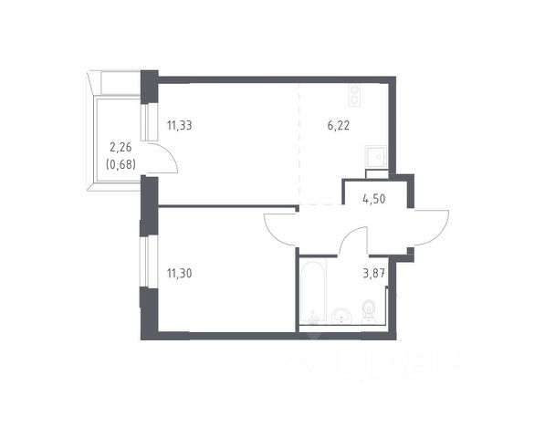 • ✅ Минимальная площадь: 33,5 м²