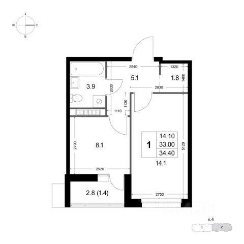 • ✅ Минимальная площадь: 32,1 м²