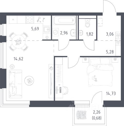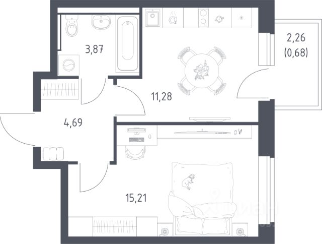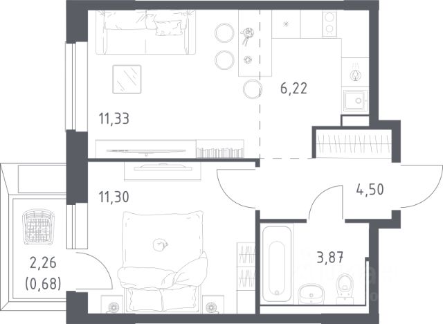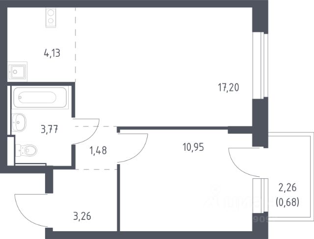 Кол-во лоджий: 1, Утеплен(ная), Застеклен(ная), Стеклопакеты