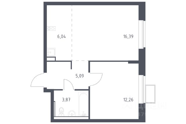 Общая площадь: 52.00 м.кв., Жилая площадь: 27.40 м.кв., Площадь кухни: 11.60 м.кв., Квартира переделана из 1-комнатной в 2-комнатную