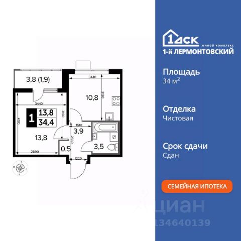 Прямая продажа от застройщика! Жилой Комплекс класса Комфорт Плюс. Продаётся 1-к квартира номер 302 общей площадью 34.3 кв.м. на 19-м этаже 24 этажного здания. Чистовая отделка. Цена с учётом скидки. Особенности квартиры: - Организуем показ в удобное для вас время! - Просторная спальня, в которой можно разместить большую кровать. - Линейная планировка - максимальная функциональность и удобство. - Ниша под шкаф - компактное и удобное место для вещей. - Лоджия - уютное место для отдыха и тишины. Квартира с чистовой отделкой. Раскройте свою индивидуальность в создании своего уникального проекта, а трудоемкий ремонт мы возьмем на себя! Вы идете в ногу со временем и предпочитаете современные, универсальные дизайнерские решения? Или вы любитель строгой лаконичной классики? Тогда наши интерьеры придутся вам по душе! Выбирайте то, что ближе лично Вам и реализуйте свои задумки вместе с нами! Информация о комплексе: "1-й Лермонтовский": современные подъезды, двор без машин и подземный паркинг. ЖК гармонично вписан в зелёное окружение Люберецкого парка и Жулебинского лесопарка, гранича с развитыми районами Некрасовка и "Красная Горка". Удобная транспортная доступность и активный отдых на природе создают баланс между спокойствием и динамикой городской жизни. Транспортная доступность: В шаговой доступности ж/д станция "Люберцы-1". 5 минут на автомобиле до станций метро "Некрасовка", "Котельники", "Лермонтовский проспект" Внутренняя инфраструктура: На территории комплекса создана безбарьерная среда для свободного перемещения. Здесь есть всё для активного отдыха и спокойного времяпрепровождения: игровые площадки для детей, зоны воркаута, спортивные комплексы и пешеходные аллеи. В шаговой доступности: 4 школы, 7 детских садов, спортивные и танцевальные секции, поликлиники, а также магазины включая "Ашан" и крупные ТЦ. Идеальная инфраструктура для комфортной жизни. Квартира с чистовой отделкой: ваш стиль без ремонта. Выбирайте современный дизайн или классику - мы воплотим ваши идеи. Готовые интерьеры для уникального дома. Продам 1-комнатную квартиру в новостройке с отделкой в Люберцах.