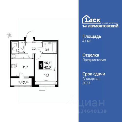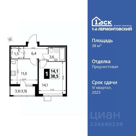 Прямая продажа от застройщика! Жилой Комплекс класса Комфорт Плюс. Продаётся 1-к квартира номер 572 общей площадью 38.2 кв.м. на 12-м этаже 24 этажного здания. Отделка Whitebox. Цена с учётом скидки. Особенности квартиры: - Просторная спальня, в которой можно разместить большую кровать. - Линейная планировка - максимальная функциональность и удобство. - Увеличенная ширина окна/окон - больше света и визуального простора. - Линейная кухня - функциональность и практичность в одном решении. - Кладовая - дополнительное пространство для хранения. - Лоджия - уютное место для отдыха и тишины. Квартира с предчистовой отделкой (White box). Вам не придется заниматься черновыми и трудоёмкими работы, а чистовую отделку и дизайн - сделайте на свой вкус. Информация о комплексе: Ощущение уютного дома должно начинаться с подъезда. Мы постарались предусмотреть все нюансы, чтобы наши лифты отвечали самым строгим современным требованиям. Двор без машин, закрытое, безопасное, охраняемое место с удобным доступом для вашего авто, более чистый воздух и гарантированное место для стоянки - и это далеко не преимущества наличия подземного паркинга. А наличие кладовых позволит вам поддерживать идеальный порядок и уют в вашей квартире! "1-й Лермонтовский" расположился недалеко от уже сложившегося зеленого окружения - Люберецкого парка и Жулебинского лесопарка, переходящего в природно - исторический парк "Кузьминки". Если вы предпочитаете активный семейный отдых на свежем воздухе - в округе мест для него предостаточно. С востока он граничит со столичным районом Некрасовка. С северной стороны - с развитым современным микрорайоном "Красная Горка". Удачное расположение дарит жильцам возможность передвижения как на своем автомобиле, так и на общественном транспорте. Транспортная доступность: В шаговой доступности ж/д станция "Люберцы-1". 5 минут на автомобиле до станций метро "Некрасовка", "Котельники", "Лермонтовский проспект" Внутренняя инфраструктура: Свободно перемещайтесь по внутренней территории в безбарьерной среде! На территории комплекса созданы все условия как для активного образа жизни, так и для спокойного времяпрепровождения: - игровые площадки для детей разного возраста. - площадки воркаута, спортивные комплексы с зонами для детского и взрослого спорта. - зоны отдыха с пешеходными дорожками и аллеями. Также, к вашим услугам: 4 общеобразовательные школы, 7 детских садов, спортивные и танцевальные, школы, поликлиники, множество магазинов и супер-маркетов, включая Ашан и несколько крупных ТЦ в шаговой доступности.