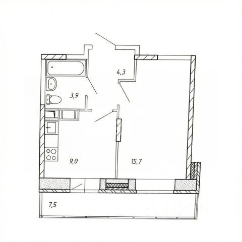 Однокомнатная квартира с большой лоджией (7. 5м. )