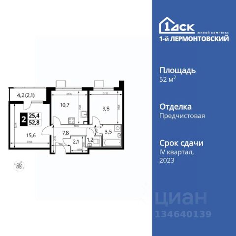 Прямая продажа от застройщика! Жилой Комплекс класса Комфорт Плюс. Продаётся 2-к квартира номер 684 общей площадью 52.9 кв.м. на 20-м этаже 25 этажного дома. Отделка Whitebox. Особенности квартиры: - Просторная спальня, в которой можно разместить большую кровать. - Линейная планировка - максимальная функциональность и удобство. - Раздельный санузел - больше удобства для всех членов семьи. - Гардеробная - удобство для хранения и организации вещей. - Лоджия - уютное место для отдыха и тишины. Квартира с предчистовой отделкой (White box). Вам не придется заниматься черновыми и трудоёмкими работы, а чистовую отделку и дизайн - сделайте на свой вкус. Информация о комплексе: Ощущение уютного дома должно начинаться с подъезда. Мы постарались предусмотреть все нюансы, чтобы наши лифты отвечали самым строгим современным требованиям. Двор без машин, закрытое, безопасное, охраняемое место с удобным доступом для вашего авто, более чистый воздух и гарантированное место для стоянки - и это далеко не преимущества наличия подземного паркинга. А наличие кладовых позволит вам поддерживать идеальный порядок и уют в вашей квартире! "1-й Лермонтовский" расположился недалеко от уже сложившегося зеленого окружения - Люберецкого парка и Жулебинского лесопарка, переходящего в природно - исторический парк "Кузьминки". Если вы предпочитаете активный семейный отдых на свежем воздухе - в округе мест для него предостаточно. С востока он граничит со столичным районом Некрасовка. С северной стороны - с развитым современным микрорайоном "Красная Горка". Удачное расположение дарит жильцам возможность передвижения как на своем автомобиле, так и на общественном транспорте. Транспортная доступность: В шаговой доступности ж/д станция "Люберцы-1". 5 минут на автомобиле до станций метро "Некрасовка", "Котельники", "Лермонтовский проспект" Внутренняя инфраструктура: Свободно перемещайтесь по внутренней территории в безбарьерной среде! На территории комплекса созданы все условия как для активного образа жизни, так и для спокойного времяпрепровождения: - игровые площадки для детей разного возраста. - площадки воркаута, спортивные комплексы с зонами для детского и взрослого спорта. - зоны отдыха с пешеходными дорожками и аллеями. Также, к вашим услугам: 4 общеобразовательные школы, 7 детских садов, спортивные и танцевальные, школы, поликлиники, множество магазинов и супер-маркетов, включая Ашан и несколько крупных ТЦ в шаговой доступности.