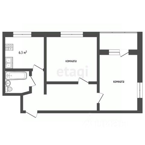 Общая площадь: 46.00 м.кв., Жилая площадь: 31.00 м.кв., Площадь кухни: 6.00 м.кв.