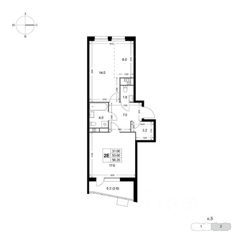 Кол-во лоджий: 1, Застеклен(ная), Стеклопакеты