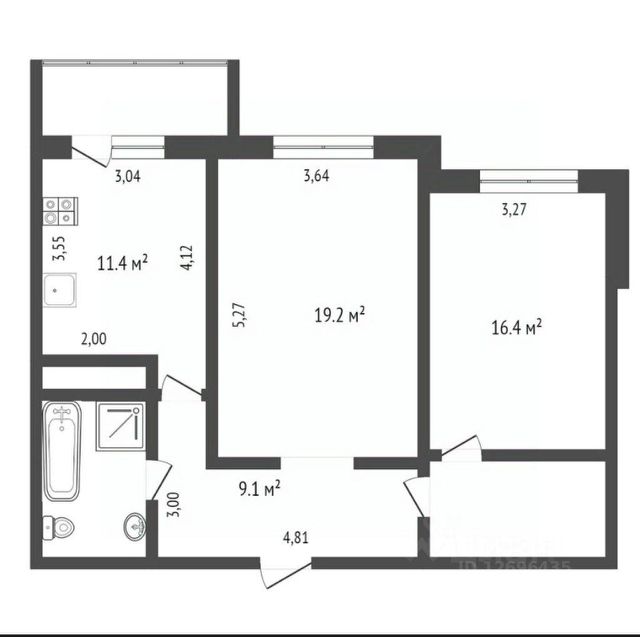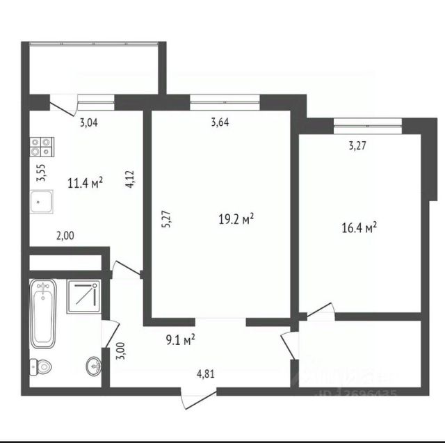Общая площадь: 49.00 м.кв., Жилая площадь: 19.00 м.кв., Площадь кухни: 13.00 м.кв.