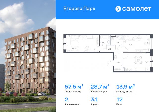 Строим кварталы для жизни с заботой о будущем. Предлагается 2-комнатная квартира комфорт-класса 59,64 кв.м в корпусе 3.1 на 12 этаже, в ЖК "Егорово Парк" Квартира с чистовой отделкой. Доступность дополнительных опций уточняйте у застройщика. Приобрести квартиру возможно по специальным акциям от застройщика, с текущими условиями акций можно ознакомиться в блоке "Акций". Цена динамическая и может отличаться, уточняйте актуальность у застройщика. ЖК "Егорово Парк" — подмосковный жилой комплекс комфорт-класса на юго-востоке Подмосковья в 15 минутах на машине до МКАД.
