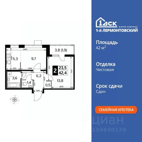 Прямая продажа от застройщика! Жилой Комплекс класса Комфорт Плюс. Продаётся 2-к квартира номер 80 общей площадью 42.4 кв.м. на 13-м этаже 24 этажного здания. Чистовая отделка. Цена с учётом скидки. Особенности квартиры: - Организуем показ в удобное для вас время! - Просторная спальня, в которой можно разместить большую кровать. - Линейная планировка - максимальная функциональность и удобство. - Увеличенное количество окон - дополнительное освещение и свежий воздух. - Раздельный санузел - больше удобства для всех членов семьи. - Евроформат - просторное и удобное жилье с отличной планировкой. - Возможность добавить спальное место - дополнительный комфорт для гостей. - Ниша под шкаф - компактное и удобное место для вещей. - Лоджия - уютное место для отдыха и тишины. Квартира с чистовой отделкой. Раскройте свою индивидуальность в создании своего уникального проекта, а трудоемкий ремонт мы возьмем на себя! Вы идете в ногу со временем и предпочитаете современные, универсальные дизайнерские решения? Или вы любитель строгой лаконичной классики? Тогда наши интерьеры придутся вам по душе! Выбирайте то, что ближе лично Вам и реализуйте свои задумки вместе с нами! Информация о комплексе: "1-й Лермонтовский": современные подъезды, двор без машин и подземный паркинг. ЖК гармонично вписан в зелёное окружение Люберецкого парка и Жулебинского лесопарка, гранича с развитыми районами Некрасовка и "Красная Горка". Удобная транспортная доступность и активный отдых на природе создают баланс между спокойствием и динамикой городской жизни. Транспортная доступность: В шаговой доступности ж/д станция "Люберцы-1". 5 минут на автомобиле до станций метро "Некрасовка", "Котельники", "Лермонтовский проспект" Внутренняя инфраструктура: На территории комплекса создана безбарьерная среда для свободного перемещения. Здесь есть всё для активного отдыха и спокойного времяпрепровождения: игровые площадки для детей, зоны воркаута, спортивные комплексы и пешеходные аллеи. В шаговой доступности: 4 школы, 7 детских садов, спортивные и танцевальные секции, поликлиники, а также магазины включая "Ашан" и крупные ТЦ. Идеальная инфраструктура для комфортной жизни. Квартира с чистовой отделкой: ваш стиль без ремонта. Выбирайте современный дизайн или классику - мы воплотим ваши идеи. Готовые интерьеры для уникального дома. Купить 2-комнатную квартиру в новостройке в Люберцах.