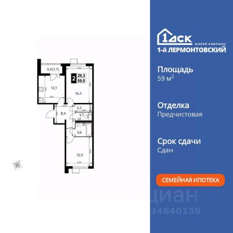 Прямая продажа от застройщика! Жилой Комплекс класса Комфорт Плюс. Продаётся 2-к квартира номер 526 общей площадью 59.5 кв.м. на 24-м этаже 24 этажного здания. Предчистовая отделка. Цена с учётом скидки. Особенности квартиры: - Организуем показ в удобное для вас время! - Просторная спальня, в которой можно разместить большую кровать. - Распашная планировка - отличное сочетание удобства и свободы. - Увеличенная ширина окна/окон - больше света и визуального простора. - Раздельный санузел - больше удобства для всех членов семьи. - Линейная кухня - функциональность и практичность в одном решении. - Ниша под шкаф - компактное и удобное место для вещей. - Кладовая - дополнительное пространство для хранения. - Лоджия - уютное место для отдыха и тишины. Квартира с предчистовой отделкой. Вам не придется заниматься черновыми и трудоёмкими работы, а чистовую отделку и дизайн - сделайте на свой вкус. Информация о комплексе: "1-й Лермонтовский": современные подъезды, двор без машин и подземный паркинг. ЖК гармонично вписан в зелёное окружение Люберецкого парка и Жулебинского лесопарка, гранича с развитыми районами Некрасовка и "Красная Горка". Удобная транспортная доступность и активный отдых на природе создают баланс между спокойствием и динамикой городской жизни. Транспортная доступность: В шаговой доступности ж/д станция "Люберцы-1". 5 минут на автомобиле до станций метро "Некрасовка", "Котельники", "Лермонтовский проспект" Внутренняя инфраструктура: На территории комплекса создана безбарьерная среда для свободного перемещения. Здесь есть всё для активного отдыха и спокойного времяпрепровождения: игровые площадки для детей, зоны воркаута, спортивные комплексы и пешеходные аллеи. В шаговой доступности: 4 школы, 7 детских садов, спортивные и танцевальные секции, поликлиники, а также магазины включая "Ашан" и крупные ТЦ. Идеальная инфраструктура для комфортной жизни. Квартира с предчистовой отделкой - ваш дизайн без черновых работ