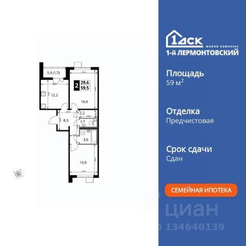Прямая продажа от застройщика! Жилой Комплекс класса Комфорт Плюс. Продаётся 2-к квартира номер 804 общей площадью 59.6 кв.м. на 19-м этаже 24 этажного здания. Предчистовая отделка. Цена с учётом скидки. Особенности квартиры: - Организуем показ в удобное для вас время! - Просторная спальня, в которой можно разместить большую кровать. - Распашная планировка - отличное сочетание удобства и свободы. - Раздельный санузел - больше удобства для всех членов семьи. - Линейная кухня - функциональность и практичность в одном решении. - Ниша под шкаф - компактное и удобное место для вещей. - Кладовая - дополнительное пространство для хранения. - Лоджия - уютное место для отдыха и тишины. Квартира с предчистовой отделкой. Вам не придется заниматься черновыми и трудоёмкими работы, а чистовую отделку и дизайн - сделайте на свой вкус. Информация о комплексе: "1-й Лермонтовский": современные подъезды, двор без машин и подземный паркинг. ЖК гармонично вписан в зелёное окружение Люберецкого парка и Жулебинского лесопарка, гранича с развитыми районами Некрасовка и "Красная Горка". Удобная транспортная доступность и активный отдых на природе создают баланс между спокойствием и динамикой городской жизни. Транспортная доступность: В шаговой доступности ж/д станция "Люберцы-1". 5 минут на автомобиле до станций метро "Некрасовка", "Котельники", "Лермонтовский проспект" Внутренняя инфраструктура: На территории комплекса создана безбарьерная среда для свободного перемещения. Здесь есть всё для активного отдыха и спокойного времяпрепровождения: игровые площадки для детей, зоны воркаута, спортивные комплексы и пешеходные аллеи. В шаговой доступности: 4 школы, 7 детских садов, спортивные и танцевальные секции, поликлиники, а также магазины включая "Ашан" и крупные ТЦ. Идеальная инфраструктура для комфортной жизни. Квартира с предчистовой отделкой - ваш дизайн без черновых работ Продажа.