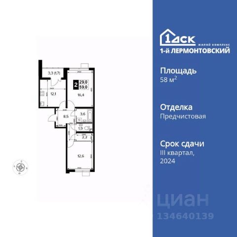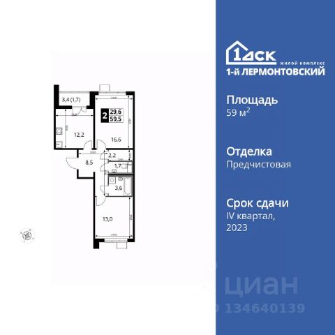 Прямая продажа от застройщика! Жилой Комплекс класса Комфорт Плюс. Продаётся 2-к квартира номер 685 общей площадью 54.4 кв.м. на 9-м этаже 25 этажного здания. Отделка Whitebox. Цена с учётом скидки. Особенности квартиры: - Просторная спальня, в которой можно разместить большую кровать. - Линейная планировка - максимальная функциональность и удобство. - Увеличенная ширина окна/окон - больше света и визуального простора. - Раздельный санузел - больше удобства для всех членов семьи. - Гардеробная - удобство для хранения и организации вещей. - Лоджия - уютное место для отдыха и тишины. Квартира с предчистовой отделкой (White box). Вам не придется заниматься черновыми и трудоёмкими работы, а чистовую отделку и дизайн - сделайте на свой вкус. Информация о комплексе: Ощущение уютного дома должно начинаться с подъезда. Мы постарались предусмотреть все нюансы, чтобы наши лифты отвечали самым строгим современным требованиям. Двор без машин, закрытое, безопасное, охраняемое место с удобным доступом для вашего авто, более чистый воздух и гарантированное место для стоянки - и это далеко не преимущества наличия подземного паркинга. А наличие кладовых позволит вам поддерживать идеальный порядок и уют в вашей квартире! "1-й Лермонтовский" расположился недалеко от уже сложившегося зеленого окружения - Люберецкого парка и Жулебинского лесопарка, переходящего в природно - исторический парк "Кузьминки". Если вы предпочитаете активный семейный отдых на свежем воздухе - в округе мест для него предостаточно. С востока он граничит со столичным районом Некрасовка. С северной стороны - с развитым современным микрорайоном "Красная Горка". Удачное расположение дарит жильцам возможность передвижения как на своем автомобиле, так и на общественном транспорте. Транспортная доступность: В шаговой доступности ж/д станция "Люберцы-1". 5 минут на автомобиле до станций метро "Некрасовка", "Котельники", "Лермонтовский проспект" Внутренняя инфраструктура: Свободно перемещайтесь по внутренней территории в безбарьерной среде! На территории комплекса созданы все условия как для активного образа жизни, так и для спокойного времяпрепровождения: - игровые площадки для детей разного возраста. - площадки воркаута, спортивные комплексы с зонами для детского и взрослого спорта. - зоны отдыха с пешеходными дорожками и аллеями. Также, к вашим услугам: 4 общеобразовательные школы, 7 детских садов, спортивные и танцевальные, школы, поликлиники, множество магазинов и супер-маркетов, включая Ашан и несколько крупных ТЦ в шаговой доступности. 2-комнатная квартира с отделкой в Люберцах.
