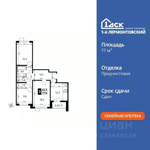 Последние квартиры с ключами по семейной ипотеке! Прямая продажа от застройщика! Жилой Комплекс класса Комфорт Плюс. Продаётся 3-к квартира номер 904 общей площадью 79.6 кв.м. на 21-м этаже 24 этажного здания. Чистовая отделка. Цена с учётом скидки. Особенности квартиры: - Просторная спальня, в которой можно разместить большую кровать. - Распашная планировка - отличное сочетание удобства и свободы. - Гостевой санузел - комфорт и удобство для ваших гостей. - Линейная кухня - функциональность и практичность в одном решении. - Ниша под шкаф - компактное и удобное место для вещей. - Кладовая - дополнительное пространство для хранения. - Лоджия - уютное место для отдыха и тишины. Информация о комплексе: Ощущение уютного дома должно начинаться с подъезда. Мы постарались предусмотреть все нюансы, чтобы наши лифты отвечали самым строгим современным требованиям. Двор без машин, закрытое, безопасное, охраняемое место с удобным доступом для вашего авто, более чистый воздух и гарантированное место для стоянки - и это далеко не преимущества наличия подземного паркинга. А наличие кладовых позволит вам поддерживать идеальный порядок и уют в вашей квартире! "1-й Лермонтовский" расположился недалеко от уже сложившегося зеленого окружения - Люберецкого парка и Жулебинского лесопарка, переходящего в природно - исторический парк "Кузьминки". Если вы предпочитаете активный семейный отдых на свежем воздухе - в округе мест для него предостаточно. С востока он граничит со столичным районом Некрасовка. С северной стороны - с развитым современным микрорайоном "Красная Горка". Удачное расположение дарит жильцам возможность передвижения как на своем автомобиле, так и на общественном транспорте. Транспортная доступность: В шаговой доступности ж/д станция "Люберцы-1". 5 минут на автомобиле до станций метро "Некрасовка", "Котельники", "Лермонтовский проспект" Внутренняя инфраструктура: Свободно перемещайтесь по внутренней территории в безбарьерной среде! На территории комплекса созданы все условия как для активного образа жизни, так и для спокойного времяпрепровождения: - игровые площадки для детей разного возраста. - площадки воркаута, спортивные комплексы с зонами для детского и взрослого спорта. - зоны отдыха с пешеходными дорожками и аллеями. Также, к вашим услугам: 4 общеобразовательные школы, 7 детских садов, спортивные и танцевальные, школы, поликлиники, множество магазинов и супер-маркетов, включая Ашан и несколько крупных ТЦ в шаговой доступности.