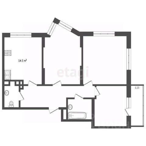 - Комната - 15,5 кв.м. (проходная через кухню)