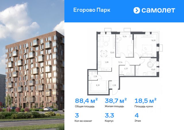 Общая площадь: 122.50 м.кв., Жилая площадь: 72.00 м.кв., Площадь кухни: 12.00 м.кв.