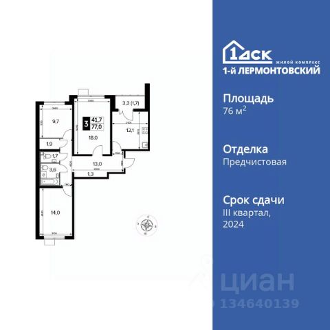 Прямая продажа от застройщика! Жилой Комплекс класса Комфорт Плюс. Продаётся 3-к квартира номер 365 общей площадью 76.9 кв.м. на 6-м этаже 24 этажного здания. Отделка Whitebox. Цена с учётом скидки. Особенности квартиры: - Просторная спальня, в которой можно разместить большую кровать. - Распашная планировка - отличное сочетание удобства и свободы. - Увеличенная ширина окна/окон - больше света и визуального простора. - Гостевой санузел - комфорт и удобство для ваших гостей. - Линейная кухня - функциональность и практичность в одном решении. - Ниша под шкаф - компактное и удобное место для вещей. - Кладовая - дополнительное пространство для хранения. - Лоджия - уютное место для отдыха и тишины. Квартира с предчистовой отделкой (White box). Вам не придется заниматься черновыми и трудоёмкими работы, а чистовую отделку и дизайн - сделайте на свой вкус. Информация о комплексе: Ощущение уютного дома должно начинаться с подъезда. Мы постарались предусмотреть все нюансы, чтобы наши лифты отвечали самым строгим современным требованиям. Двор без машин, закрытое, безопасное, охраняемое место с удобным доступом для вашего авто, более чистый воздух и гарантированное место для стоянки - и это далеко не преимущества наличия подземного паркинга. А наличие кладовых позволит вам поддерживать идеальный порядок и уют в вашей квартире! "1-й Лермонтовский" расположился недалеко от уже сложившегося зеленого окружения - Люберецкого парка и Жулебинского лесопарка, переходящего в природно - исторический парк "Кузьминки". Если вы предпочитаете активный семейный отдых на свежем воздухе - в округе мест для него предостаточно. С востока он граничит со столичным районом Некрасовка. С северной стороны - с развитым современным микрорайоном "Красная Горка". Удачное расположение дарит жильцам возможность передвижения как на своем автомобиле, так и на общественном транспорте. Транспортная доступность: В шаговой доступности ж/д станция "Люберцы-1". 5 минут на автомобиле до станций метро "Некрасовка", "Котельники", "Лермонтовский проспект" Внутренняя инфраструктура: Свободно перемещайтесь по внутренней территории в безбарьерной среде! На территории комплекса созданы все условия как для активного образа жизни, так и для спокойного времяпрепровождения: - игровые площадки для детей разного возраста. - площадки воркаута, спортивные комплексы с зонами для детского и взрослого спорта. - зоны отдыха с пешеходными дорожками и аллеями. Также, к вашим услугам: 4 общеобразовательные школы, 7 детских садов, спортивные и танцевальные, школы, поликлиники, множество магазинов и супер-маркетов, включая Ашан и несколько крупных ТЦ в шаговой доступности. Купить 3-комнатную квартиру от застройщика в Люберцах.