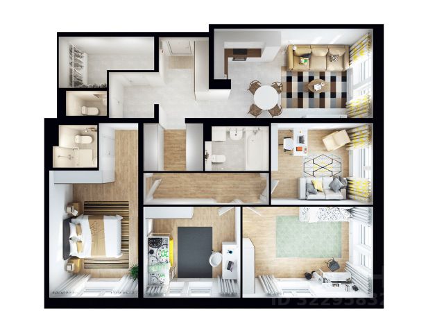 Кухня, гостиная, 3 спальни, 3 с/у
