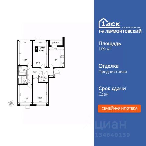 Последние квартиры с ключами по семейной ипотеке! Прямая продажа от застройщика! Жилой Комплекс класса Комфорт Плюс. Продаётся 4-к квартира номер 827 общей площадью 109.5 кв.м. на 24-м этаже 24 этажного здания. Отделка Whitebox. Цена с учётом скидки. Особенности квартиры: - Просторная спальня, в которой можно разместить большую кровать. - Распашная планировка - отличное сочетание удобства и свободы. - Гостевой санузел - комфорт и удобство для ваших гостей. - Душ помимо ванной - дополнительное удобство для вашей семьи. - Раздельный санузел - больше удобства для всех членов семьи. - Увеличенная высота потолков - ощущение простора и легкости. - Просторная кухня - место для семейных ужинов и кулинарных экспериментов. - Линейная кухня - функциональность и практичность в одном решении. - Ниша под шкаф - компактное и удобное место для вещей. - Кладовая - дополнительное пространство для хранения. - Лоджия - уютное место для отдыха и тишины. Квартира с предчистовой отделкой (White box). Вам не придется заниматься черновыми и трудоёмкими работы, а чистовую отделку и дизайн - сделайте на свой вкус. Информация о комплексе: Ощущение уютного дома должно начинаться с подъезда. Мы постарались предусмотреть все нюансы, чтобы наши лифты отвечали самым строгим современным требованиям. Двор без машин, закрытое, безопасное, охраняемое место с удобным доступом для вашего авто, более чистый воздух и гарантированное место для стоянки - и это далеко не преимущества наличия подземного паркинга. А наличие кладовых позволит вам поддерживать идеальный порядок и уют в вашей квартире! "1-й Лермонтовский" расположился недалеко от уже сложившегося зеленого окружения - Люберецкого парка и Жулебинского лесопарка, переходящего в природно - исторический парк "Кузьминки". Если вы предпочитаете активный семейный отдых на свежем воздухе - в округе мест для него предостаточно. С востока он граничит со столичным районом Некрасовка. С северной стороны - с развитым современным микрорайоном "Красная Горка". Удачное расположение дарит жильцам возможность передвижения как на своем автомобиле, так и на общественном транспорте. Транспортная доступность: В шаговой доступности ж/д станция "Люберцы-1". 5 минут на автомобиле до станций метро "Некрасовка", "Котельники", "Лермонтовский проспект" Внутренняя инфраструктура: Свободно перемещайтесь по внутренней территории в безбарьерной среде! На территории комплекса созданы все условия как для активного образа жизни, так и для спокойного времяпрепровождения: - игровые площадки для детей разного возраста. - площадки воркаута, спортивные комплексы с зонами для детского и взрослого спорта. - зоны отдыха с пешеходными дорожками и аллеями. Также, к вашим услугам: 4 общеобразовательные школы, 7 детских с Продам 4-комнатную квартиру первичка в Люберцах.