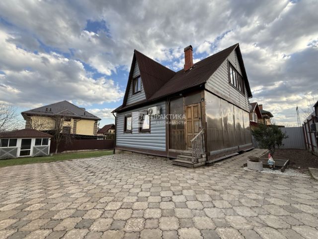 Дом построен на участке 6,1 соток, участок правильной формы. По периметру участка установлен забор из профлиста, высотой 2 метра. Въездная площадка забетонирована. Имеются откатные ворота, открываются с пульта. Перед домом из усиленной плитки выложена парковочная площадка на 5 машиномест. На участке газон, плодовые деревья, сарай, сушилка для белья. Вокруг дома посажены сосны. На участке построена уютная беседка. Также имеется вольер.