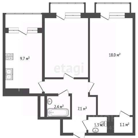Кухня, гостиная, 3 спальни, 3 с/у