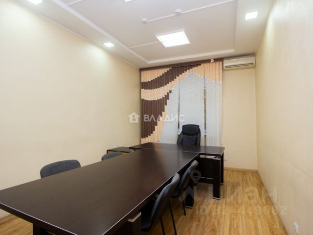 На первом этаже располагается ресепшен, большая переговорная, кабинеты, комната отдыха, подсобное помещение, санузел и кухня столовая, оборудованная кухонным гарнитуром, холодильником, СВЧ-печью, посудомоечной машиной. В кабинетах кондиционеры. Окна защищены решётками.