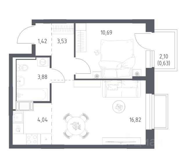 Кол-во лоджий: 1, Кол-во балконов: 1, Застеклен(ная)
