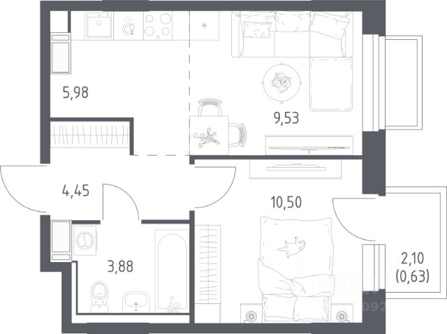Кол-во лоджий: 1, Застеклен(ная), Стеклопакеты