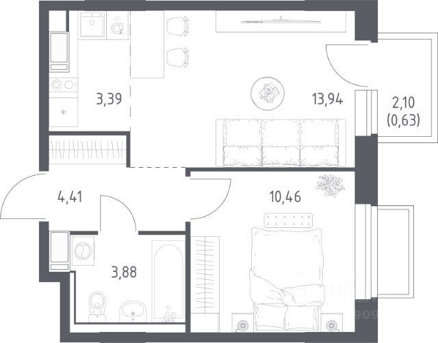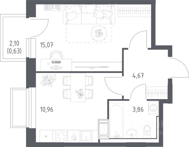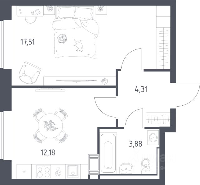 • ✅ Минимальная площадь: 21,7 м²