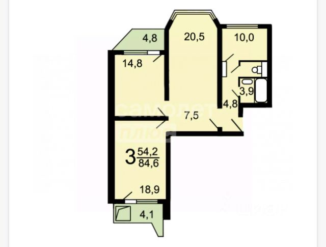- Комната - 16,5 кв.м. (проходная через кухню)