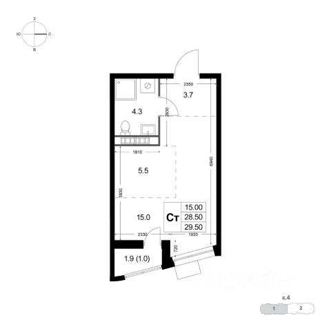 Добротная светлая просторная квартира 50,9 кв.м. с идеально ровными стенами, полом и потолком.