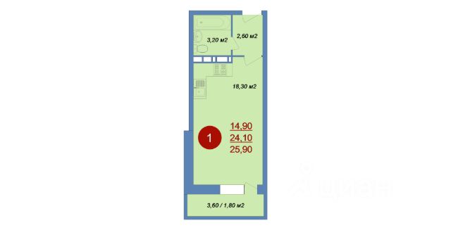 Кол-во лоджий: 1, Застеклен(ная), Стеклопакеты