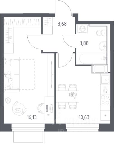 Общая площадь: 50.00 м.кв., Жилая площадь: 16.00 м.кв., Площадь кухни: 18.00 м.кв.