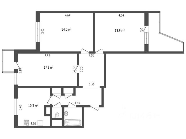 Кол-во лоджий: 1, Застеклен(ная)