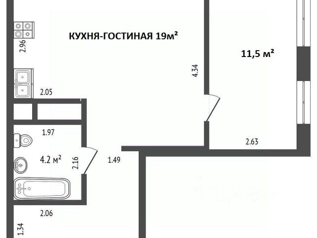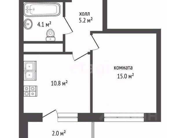 ПЛАНИРОВКА квартиры позволяет максимально эффективно использовать пространство. Квартира включает в себя: прихожую-холл площадью 4,6 кв.м, кухню-гостиную площадью 16,9 кв.м, спальную комнату площадью 10,1 кв.м и совмещенный санузел площадью 3,9 кв.м. При желании в зону кухни-гостиной можно добавить разделение перегородкой и получится полноценная вторая комната.