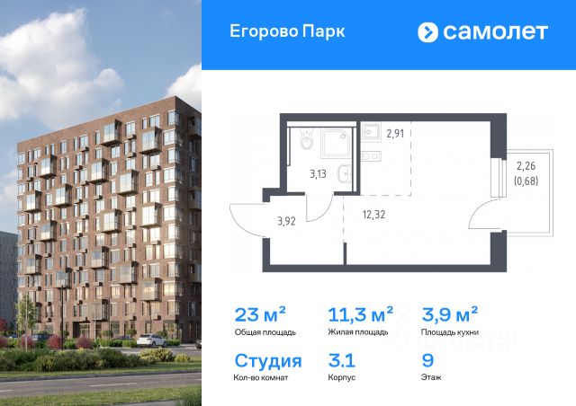 В продаже просторная квартира студия в жилом комплексе комфорт класса "Егорово парк".