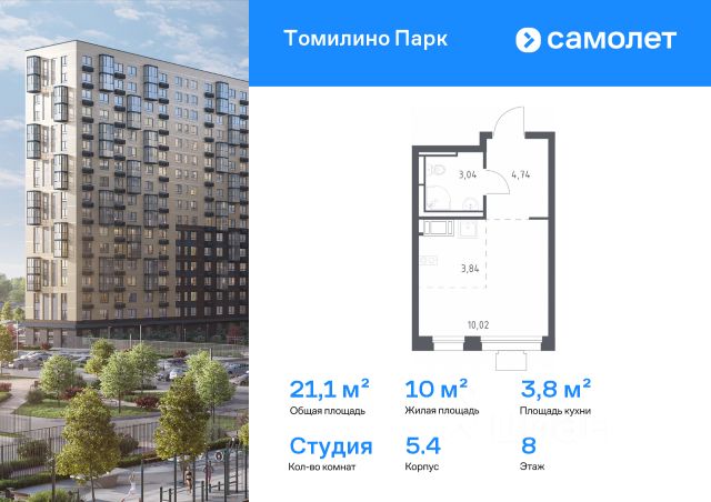 Общая площадь: 29.50 м.кв., Жилая площадь: 15.00 м.кв., Площадь кухни: 8.00 м.кв.