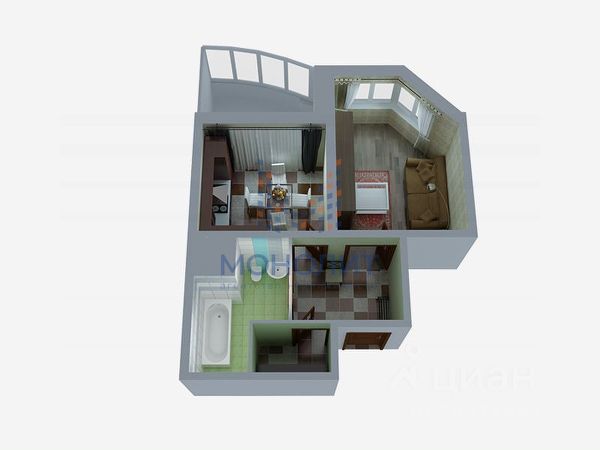 - Комната - 16,5 кв.м. (проходная через кухню)