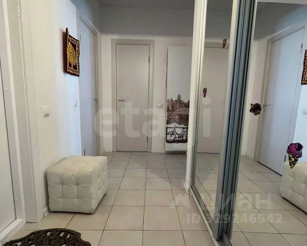 В прихожей обувница и вешалка металлические из икеи. Дверь с зеркалом. Есть вешалки для детей.