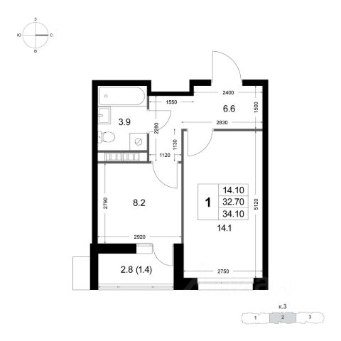 • ✅ Минимальная площадь: 29,1 м²