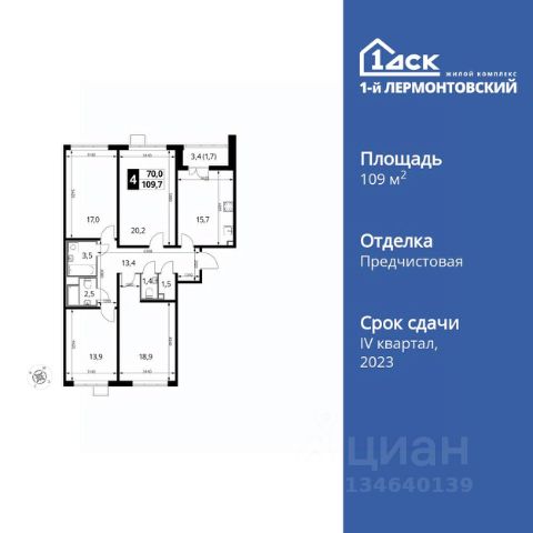 Прямая продажа от застройщика! Жилой Комплекс класса Комфорт Плюс. Продаётся 4-к квартира номер 807 общей площадью 109.5 кв.м. на 19-м этаже 24 этажного здания. Отделка Whitebox. Цена с учётом скидки. Особенности квартиры: - Просторная спальня, в которой можно разместить большую кровать. - Распашная планировка - отличное сочетание удобства и свободы. - Гостевой санузел - комфорт и удобство для ваших гостей. - Душ помимо ванной - дополнительное удобство для вашей семьи. - Раздельный санузел - больше удобства для всех членов семьи. - Просторная кухня - место для семейных ужинов и кулинарных экспериментов. - Линейная кухня - функциональность и практичность в одном решении. - Ниша под шкаф - компактное и удобное место для вещей. - Кладовая - дополнительное пространство для хранения. - Лоджия - уютное место для отдыха и тишины. Квартира с предчистовой отделкой (White box). Вам не придется заниматься черновыми и трудоёмкими работы, а чистовую отделку и дизайн - сделайте на свой вкус. Информация о комплексе: Ощущение уютного дома должно начинаться с подъезда. Мы постарались предусмотреть все нюансы, чтобы наши лифты отвечали самым строгим современным требованиям. Двор без машин, закрытое, безопасное, охраняемое место с удобным доступом для вашего авто, более чистый воздух и гарантированное место для стоянки - и это далеко не преимущества наличия подземного паркинга. А наличие кладовых позволит вам поддерживать идеальный порядок и уют в вашей квартире! "1-й Лермонтовский" расположился недалеко от уже сложившегося зеленого окружения - Люберецкого парка и Жулебинского лесопарка, переходящего в природно - исторический парк "Кузьминки". Если вы предпочитаете активный семейный отдых на свежем воздухе - в округе мест для него предостаточно. С востока он граничит со столичным районом Некрасовка. С северной стороны - с развитым современным микрорайоном "Красная Горка". Удачное расположение дарит жильцам возможность передвижения как на своем автомобиле, так и на общественном транспорте. Транспортная доступность: В шаговой доступности ж/д станция "Люберцы-1". 5 минут на автомобиле до станций метро "Некрасовка", "Котельники", "Лермонтовский проспект" Внутренняя инфраструктура: Свободно перемещайтесь по внутренней территории в безбарьерной среде! На территории комплекса созданы все условия как для активного образа жизни, так и для спокойного времяпрепровождения: - игровые площадки для детей разного возраста. - площадки воркаута, спортивные комплексы с зонами для детского и взрослого спорта. - зоны отдыха с пешеходными дорожками и аллеями. Также, к вашим услугам: 4 общеобразовательные школы, 7 детских садов, спортивные и танцевальные, школы, поликлиники, множество магазинов и супер-маркетов, включая Ашан и несколь Купить квартиру с отделкой в Люберцах.