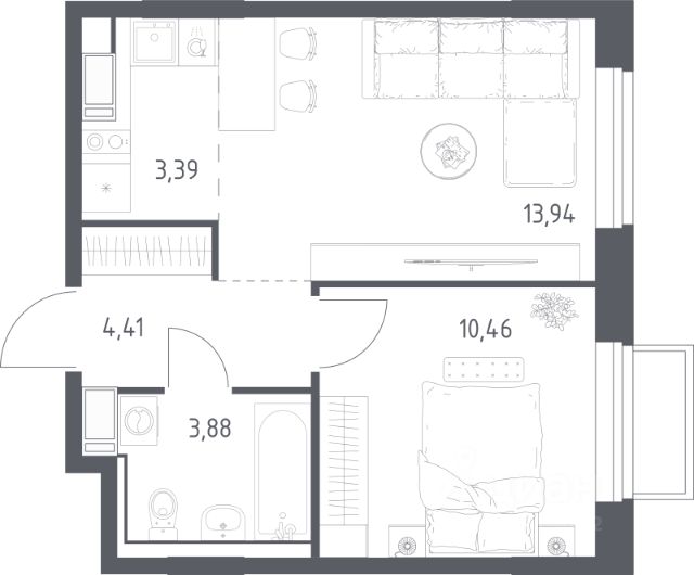 - Окна выходят на две стороны - в квартире всегда солнечно и светло.