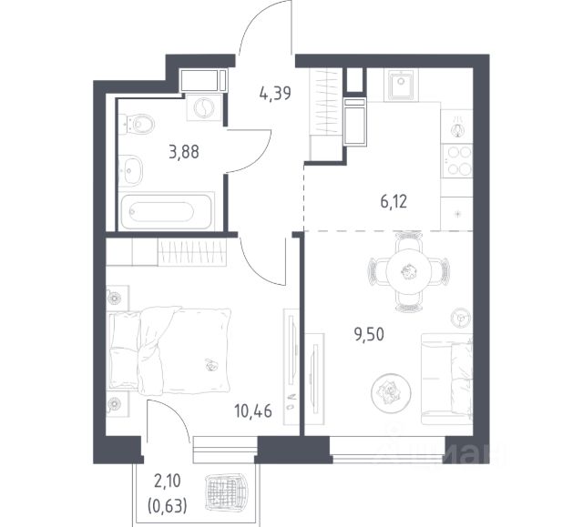 Квартира с балконом.
