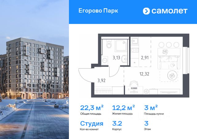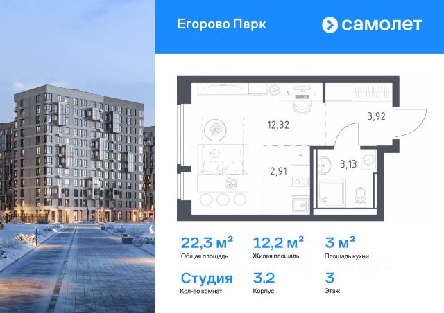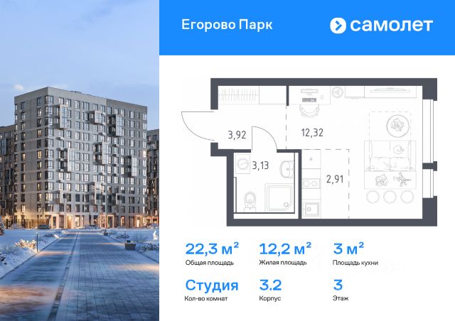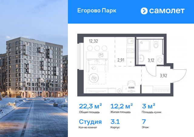 • ✅ Минимальная площадь: 22,3 м²