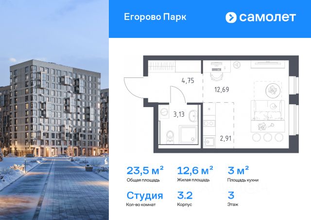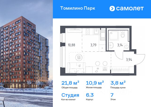 В ЖК "Легенда Марусино" продаётся студия -к квартира 24.7 кв. м, расположенная на 4 -м этаже 4 -этажного дома.