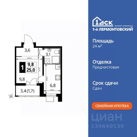 • ✓ В базе Циан 7 квартир-студий в Люберцах в ЖК 1-й Лермонтовский