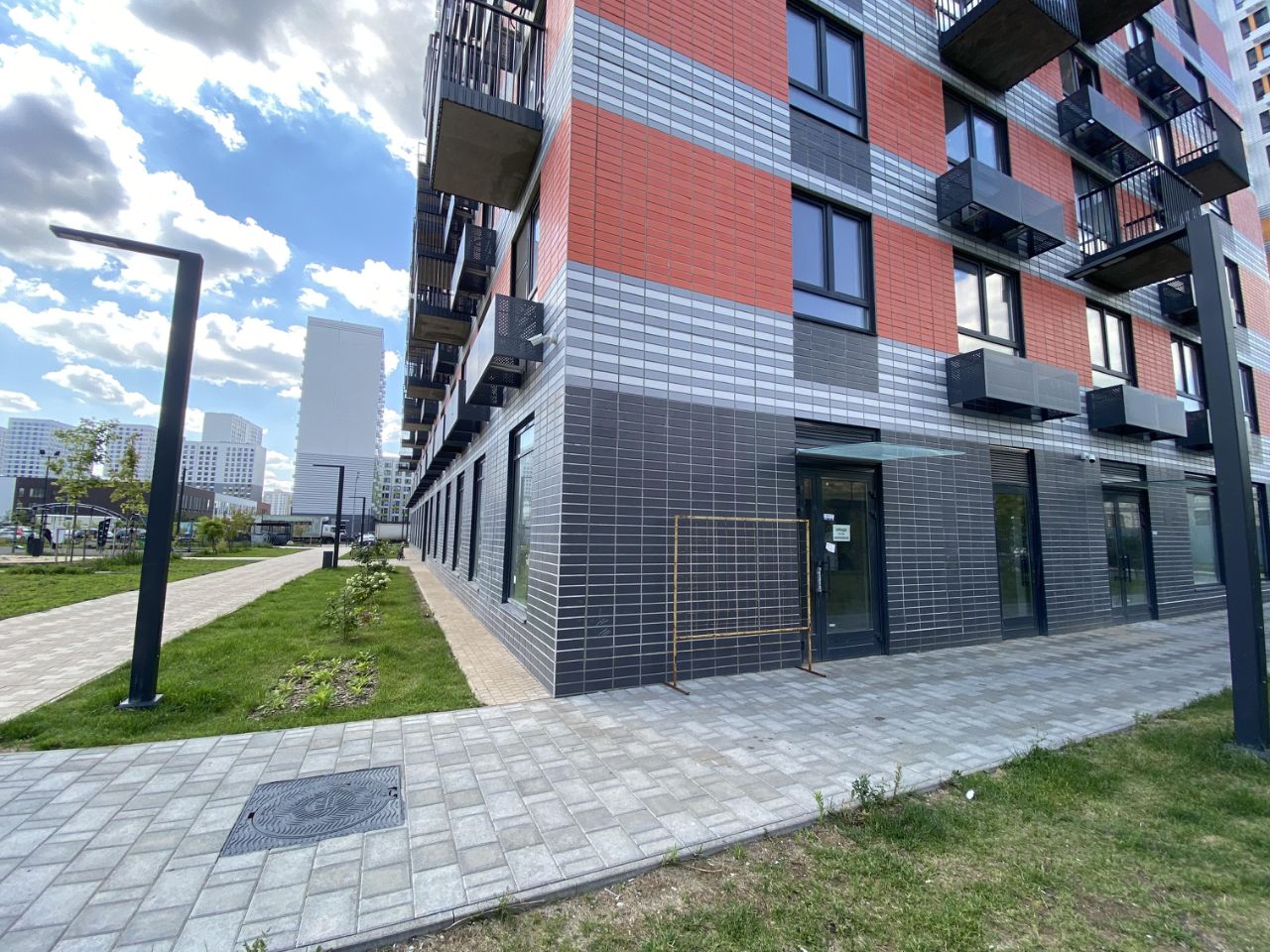Новостройка, На одной стороне расположены 3 здания по 24 этажа других домов нет. По пути от парковки и детской площадке на первой линии, что обеспечит максимальную проходимость. Учебные заведения расположены в отдаленности не менее 100 метров (остальные дома ближе чем 100 метров в перспективе строительства).