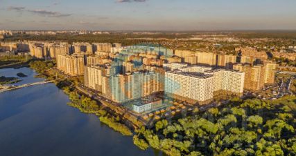 Находится на первой линии на въезде в ЖК с Зенинского шоссе.
