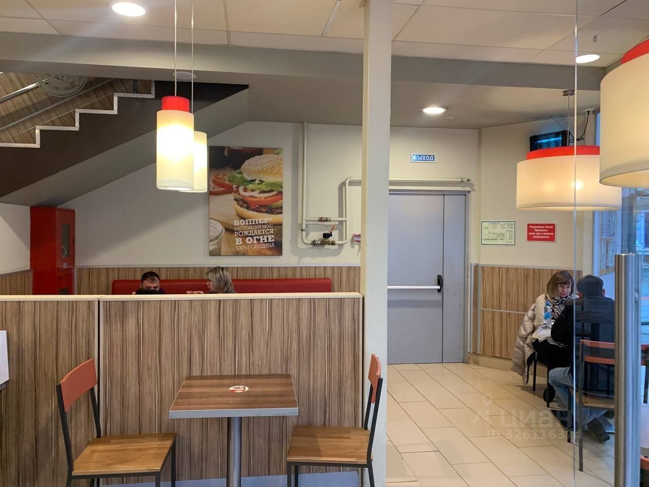 - Уютная зона рассадки для гостей, которые хотят перекусить на ходу, с удобным доступом для маломобильных групп.